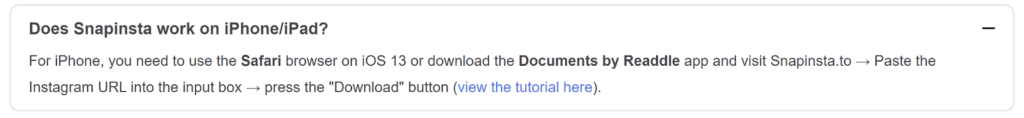 Many people say SnapInsta gives you high-quality downloads, which is great. But it’s not very simple to use—it takes extra steps, and the process can be confusing. Also, it doesn’t work for private accounts, even if you follow them. So, it’s mostly helpful for public Instagram posts.